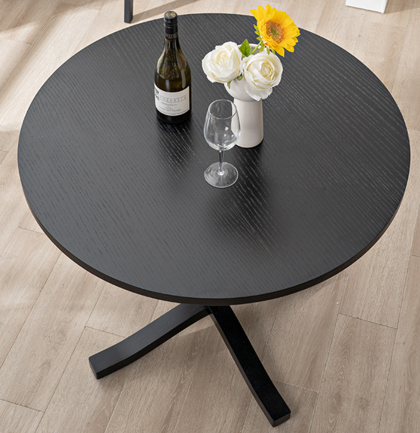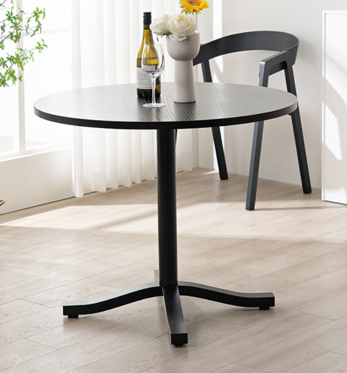Contract furniture black wooden round dining table black timber wood cafe table 90cm