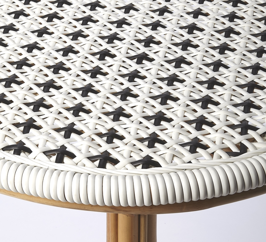 Function, form and fun all come together on this beautiful PU Rattan weave dining chair. The simplistic design of this chair is enhanced by a ‘POP” of contemporary design. The functional design of the dining chair with its intricate patterned weave and patterned chair arms offer all attentions to details. The matching collection dining table will make this the pefect setting for all your entertaining or that simple dining experience