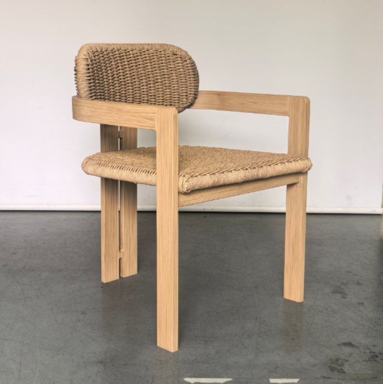 Outdoor bistro dining chair aluminum frame in wood finish rope woven cafe chair