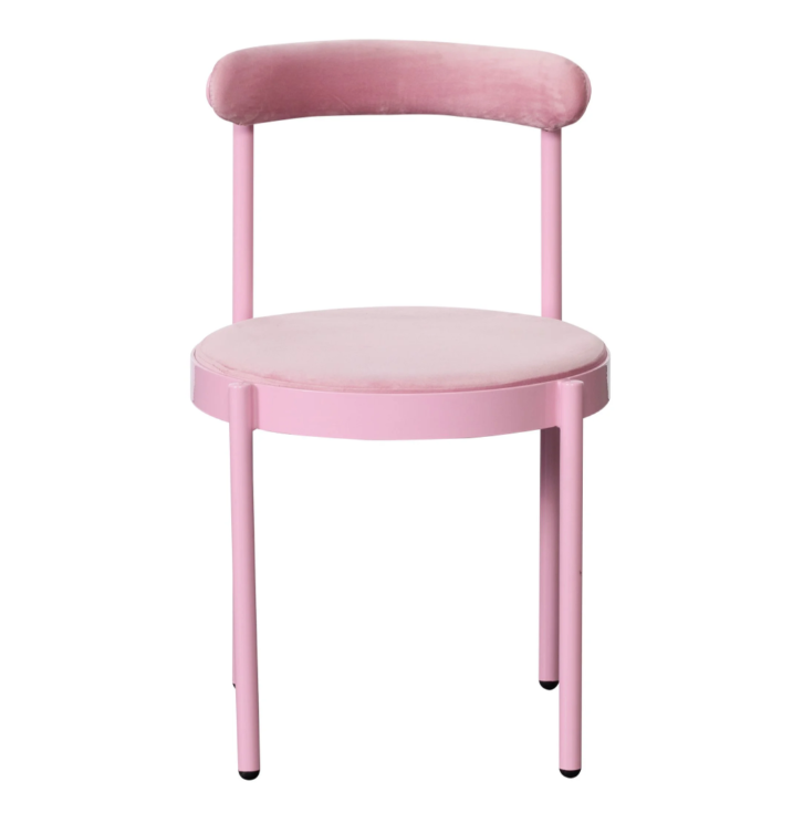 Event hire furniture stackable blush pink powder coated metal frame velvet upholstered dining chair for wedding