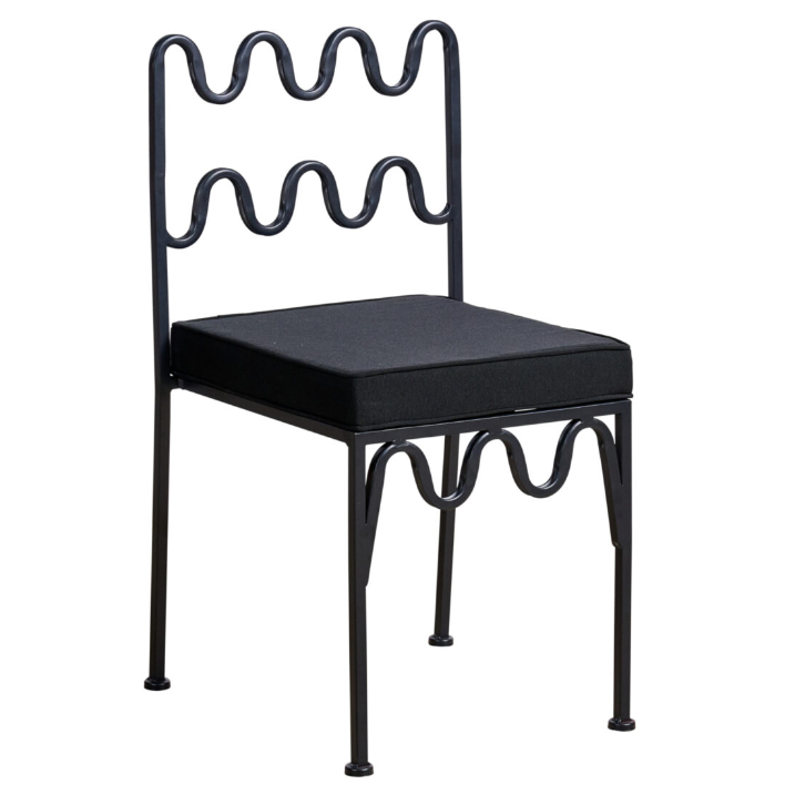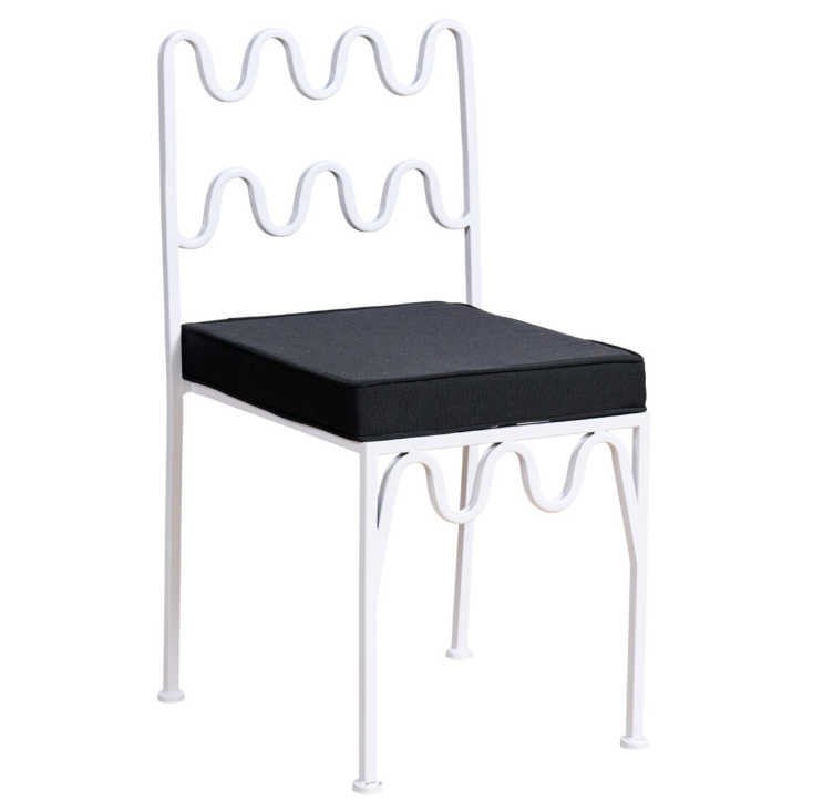 Event rental furniture  stackable wavy white iron chair metal upholstered with piping wedding chair