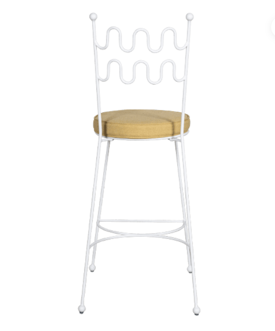 Event rental furniture white powder coated metal frame yellow upholstered high bar stool metal bar chair for party