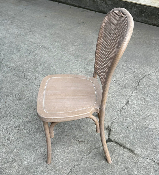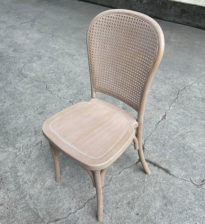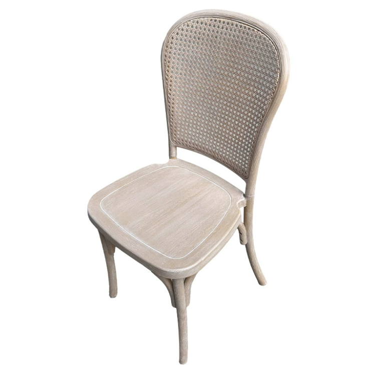 Event rental furniture wood look resin dining chair stackable plastic chair in whitewash wood finish