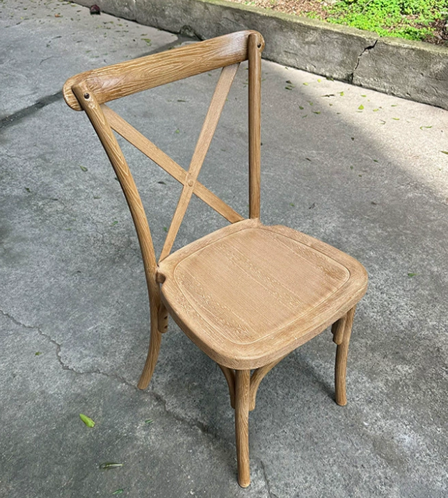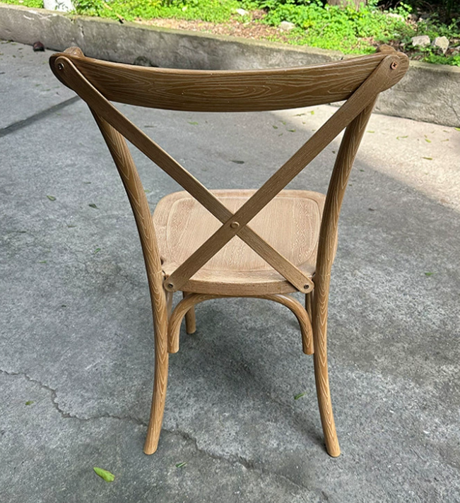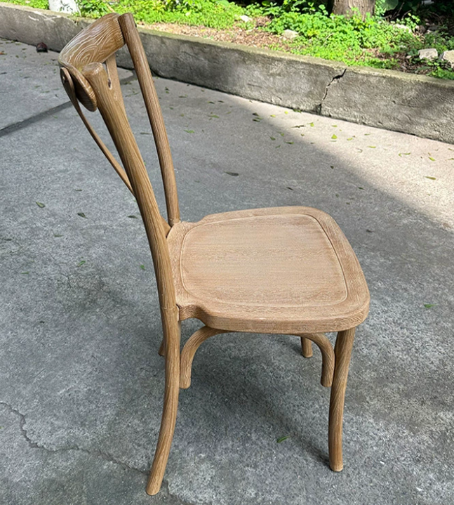 Event rental furniture wood look resin PP thonet dining chair stackable plastic chair in natural wood color