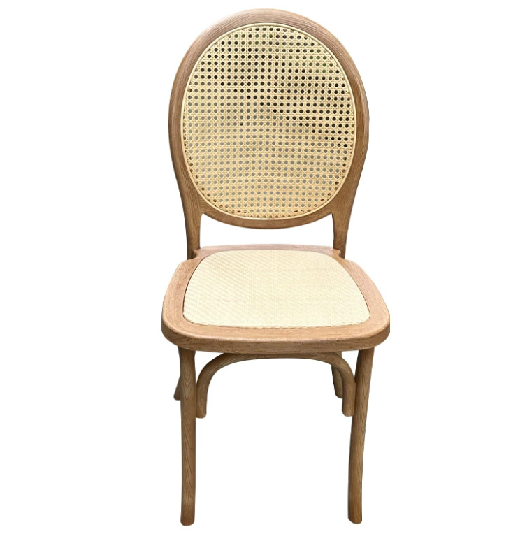 Event rental furniture wood look resin rattan dining chair stackable plastic chair in light brown wood finish