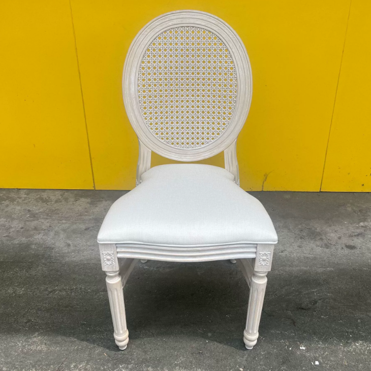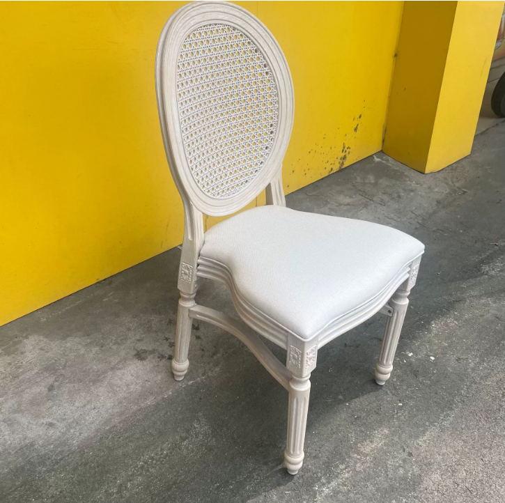 Event rental furniture wood look resin rattan dining chair stackable PP resin chair in white-wash wood finish