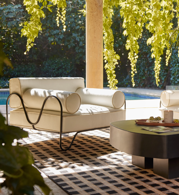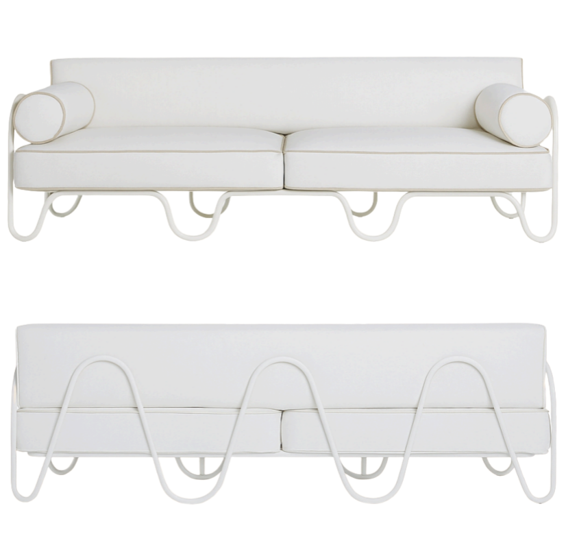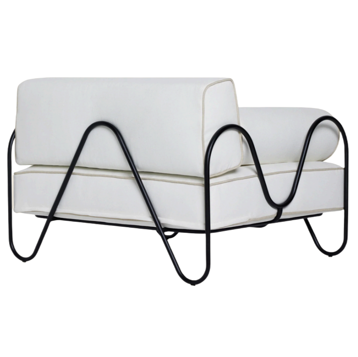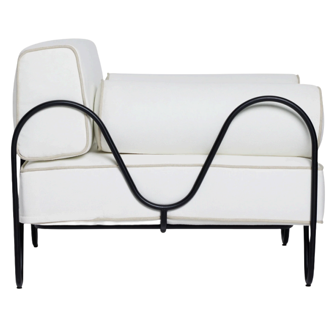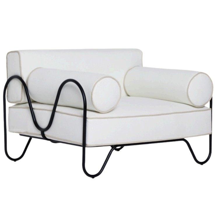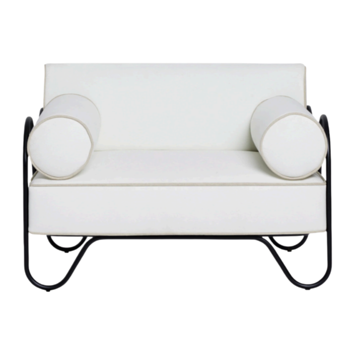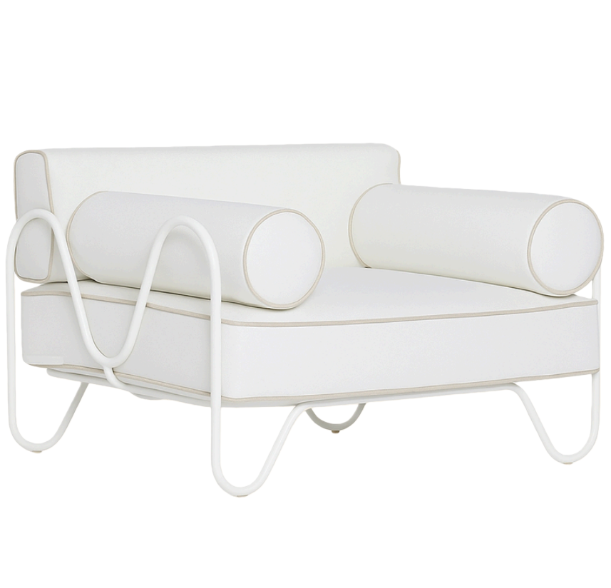 Event rental lounge furniture white metal frame striped fabric cushion upholstered outdoor armchair sofa for party