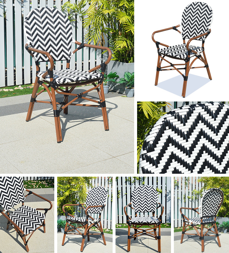 French Bistro Bamboo Aluminum Frame with All Weather rattan weaving