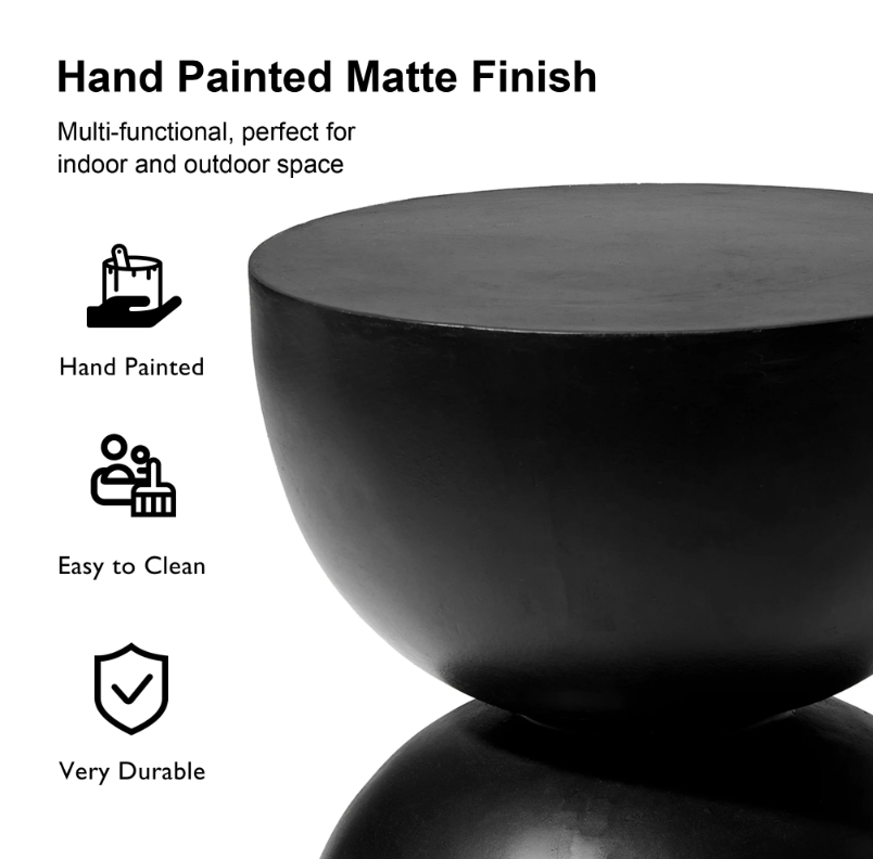 Garden side table black matt painted  Round Magnesium Oxide Side Table for indoor or outdoor use