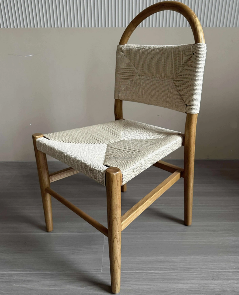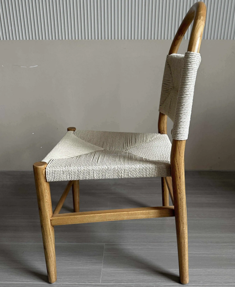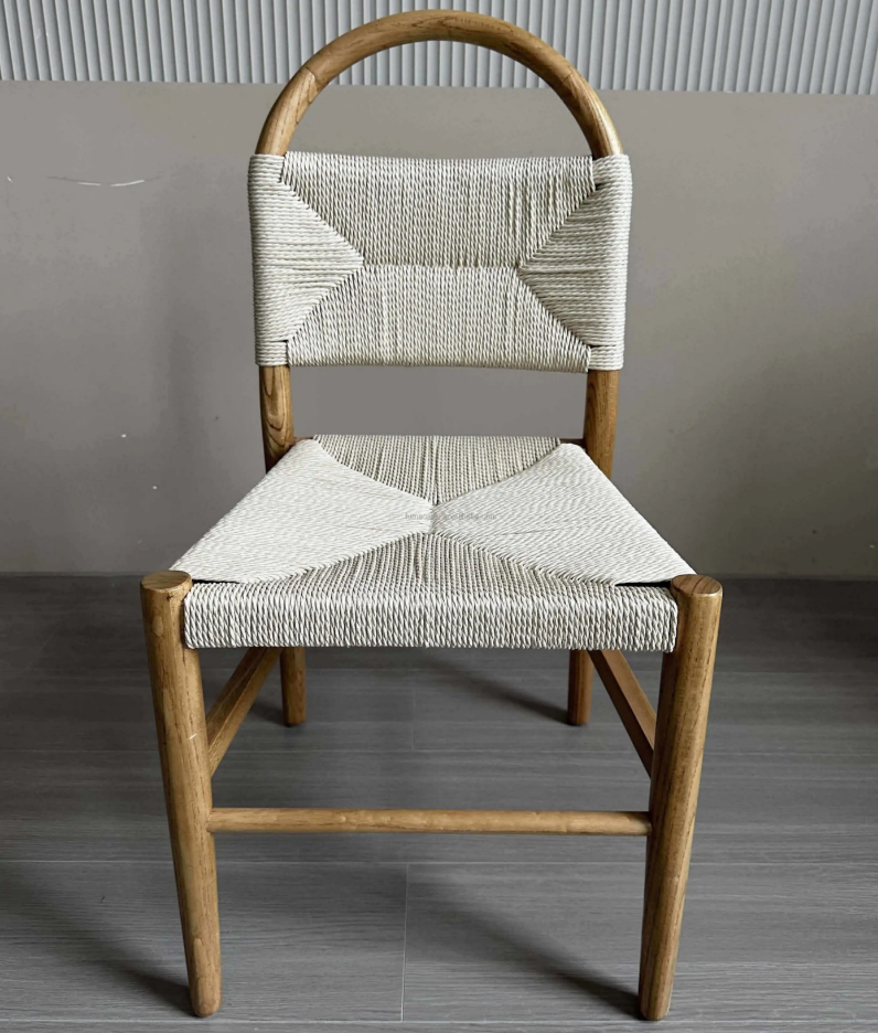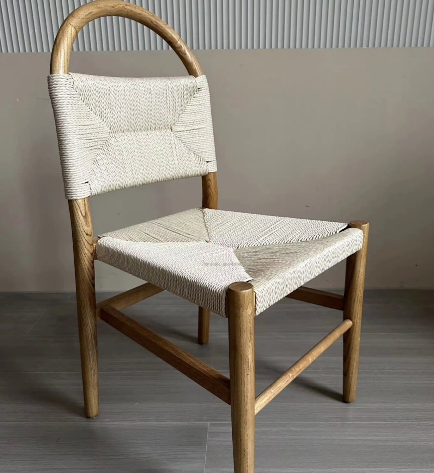 Stackable Modern Wooden Dining Chair Wedding Party Event Chairs Timber wood Backrest Braided Rope Chair