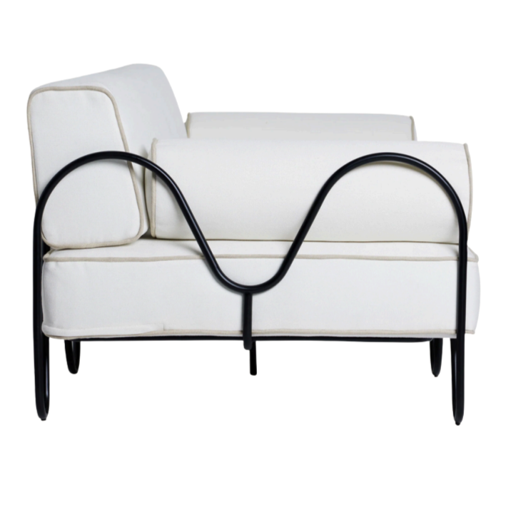 New arrival outdoor party lounge furniture black metal frame white cushion upholstered outdoor 3 seater sofa for party