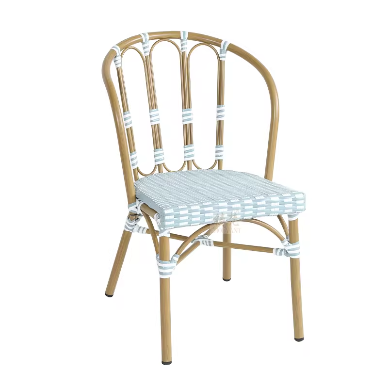 New Design Simple Style Outdoor Dining Chair Hot French Style aluminum frame PE wicker cafe chair Garden Rattan Chair