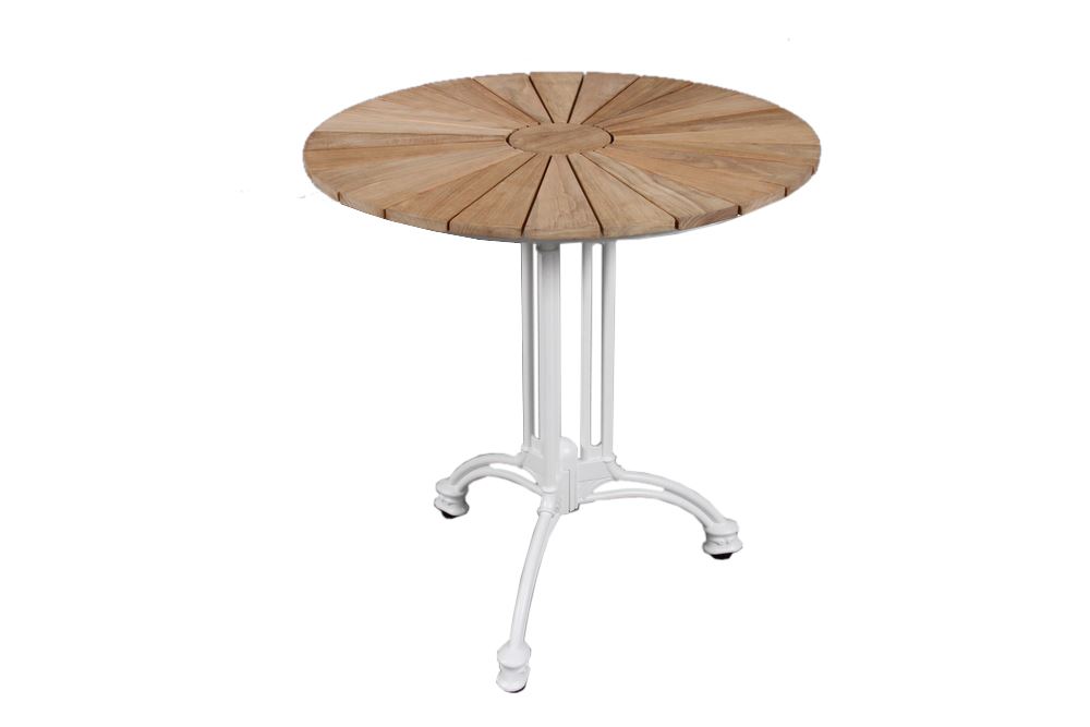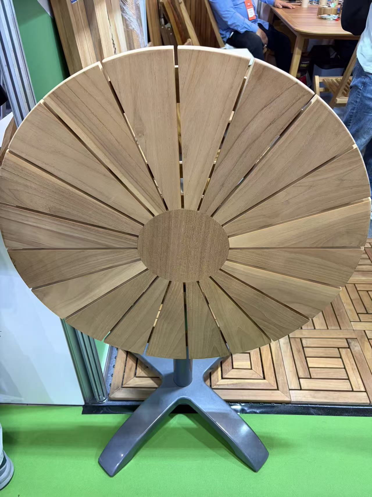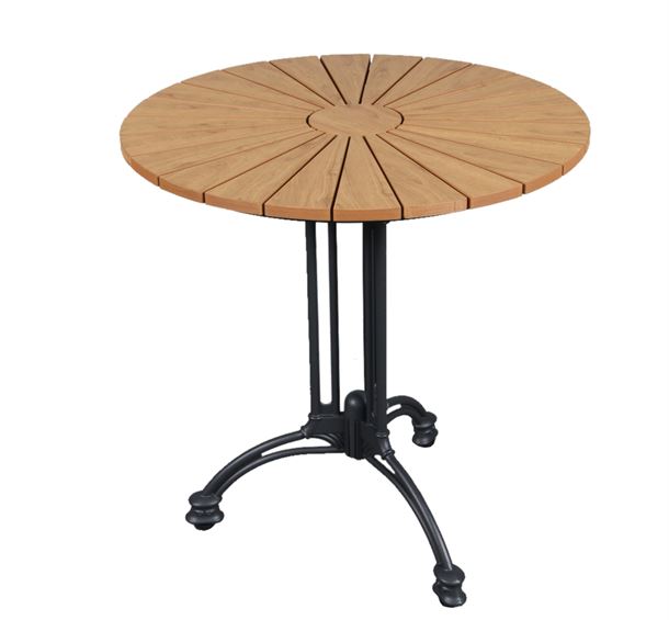 Outdoor bistro cafe table waterproof and durable teak wood with metal base round table top