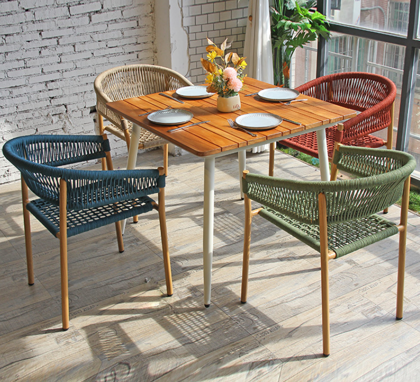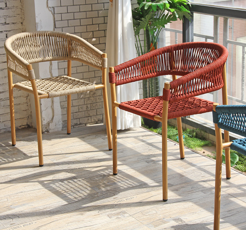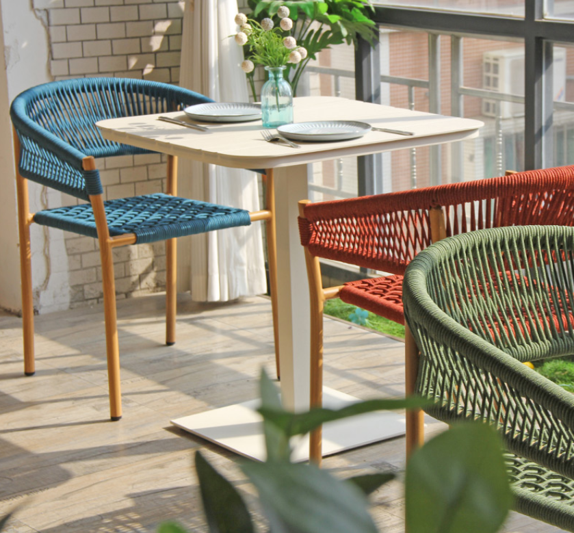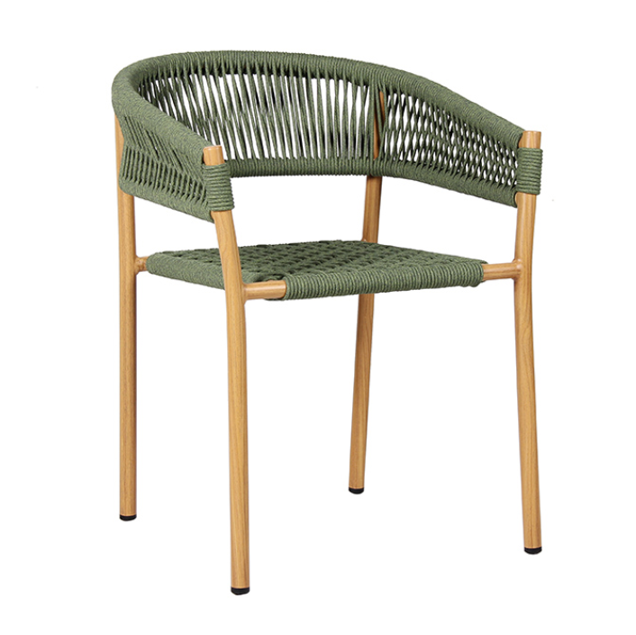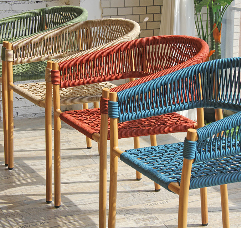 This Waterproof Armrest Rope Woven Chair For Garden Balcony Patio, which combines an aluminum frame, imitation wood grain paint finish, and polyester woven rope, is not only a functional seat, but also a carrier of commercial space operation efficiency and aesthetic expression.