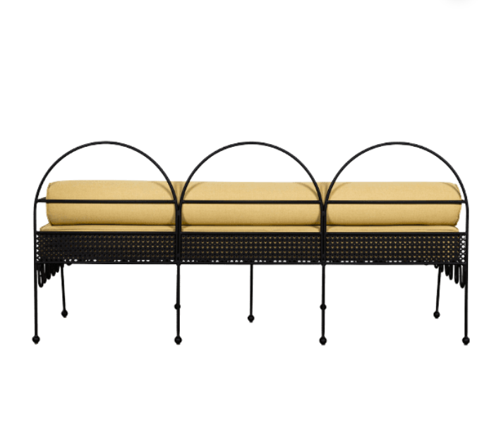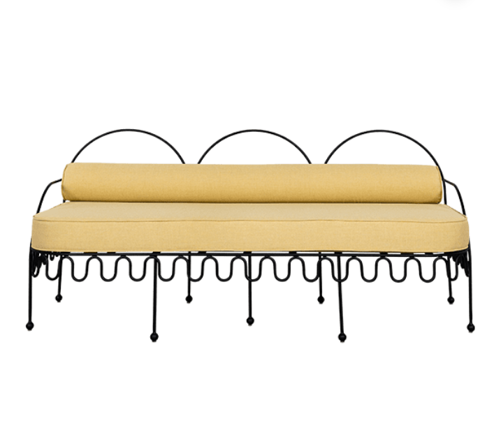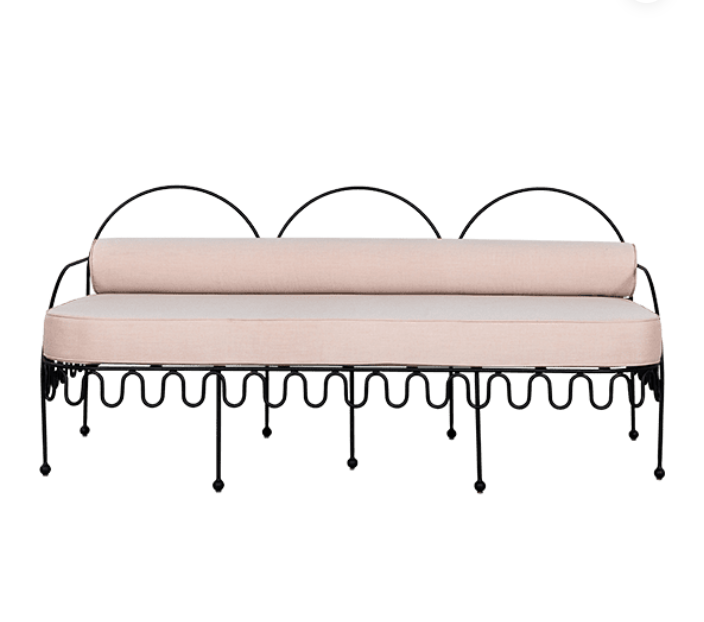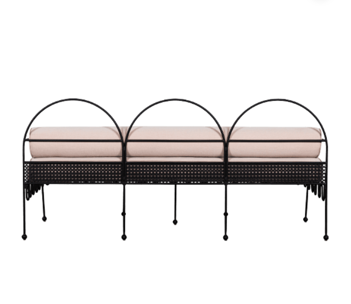 Outdoor event rental furniture black metal frame beige upholstered 3 seater lounge sofa for party