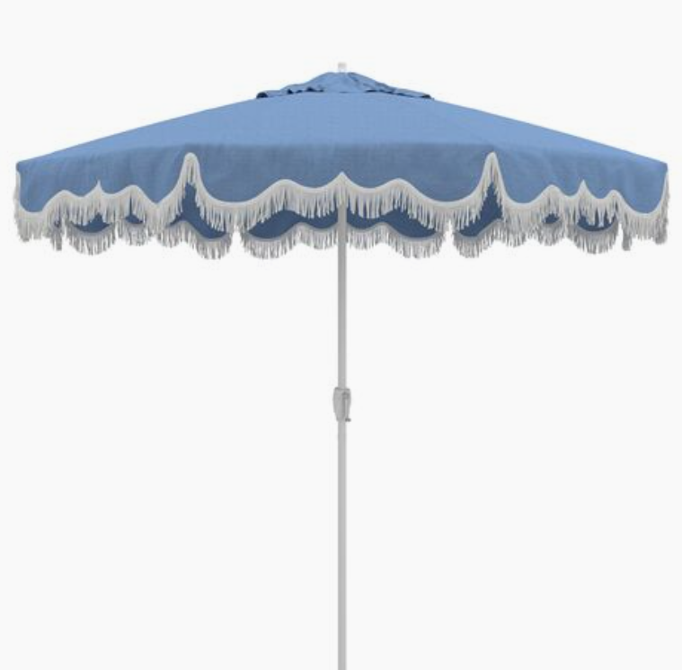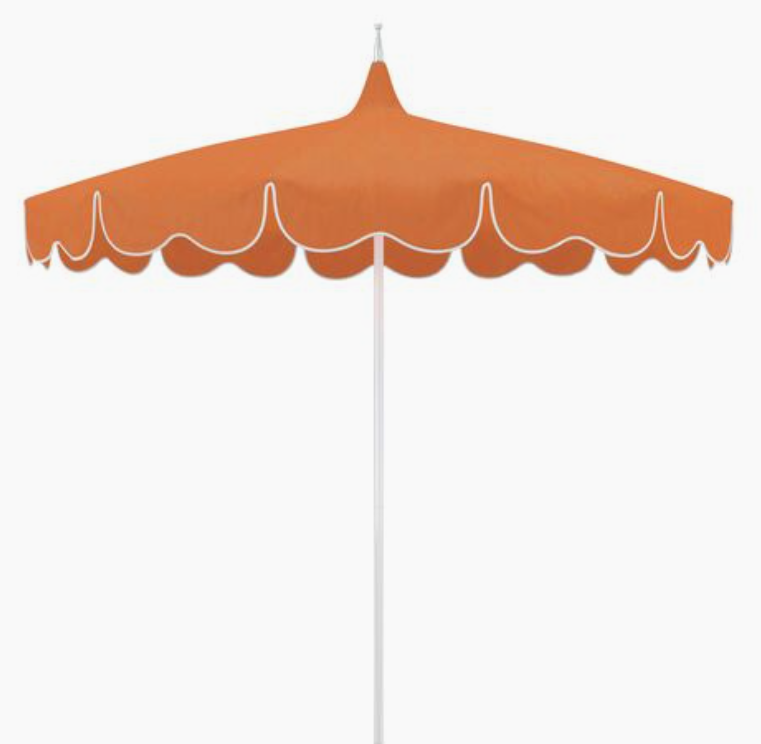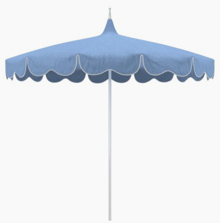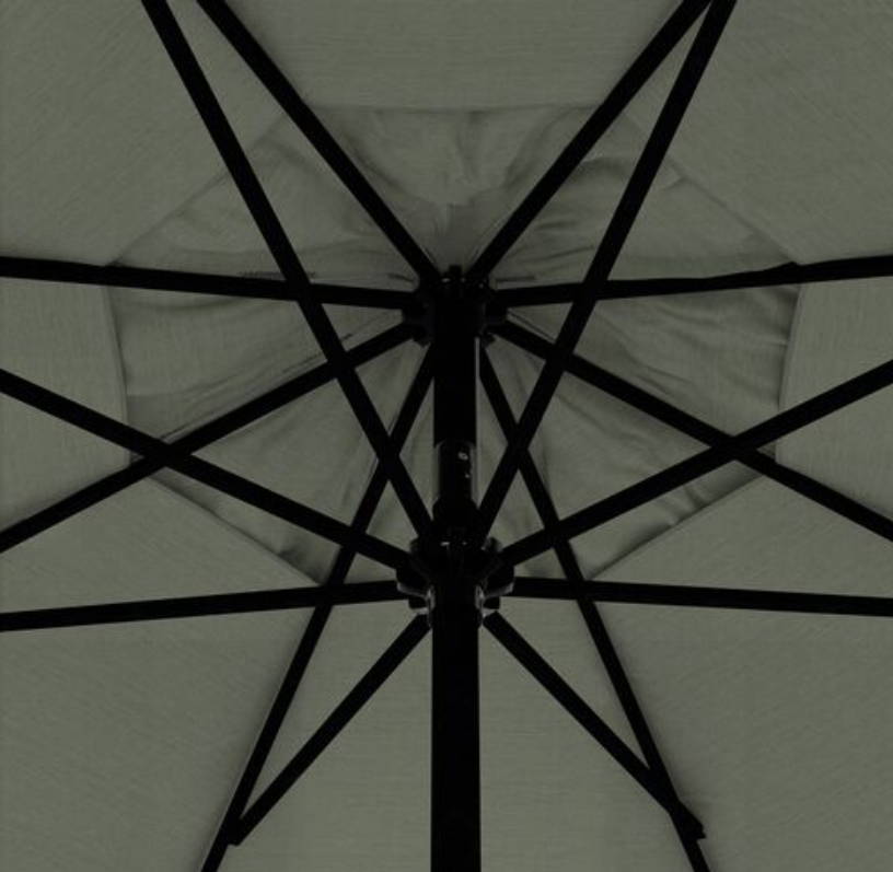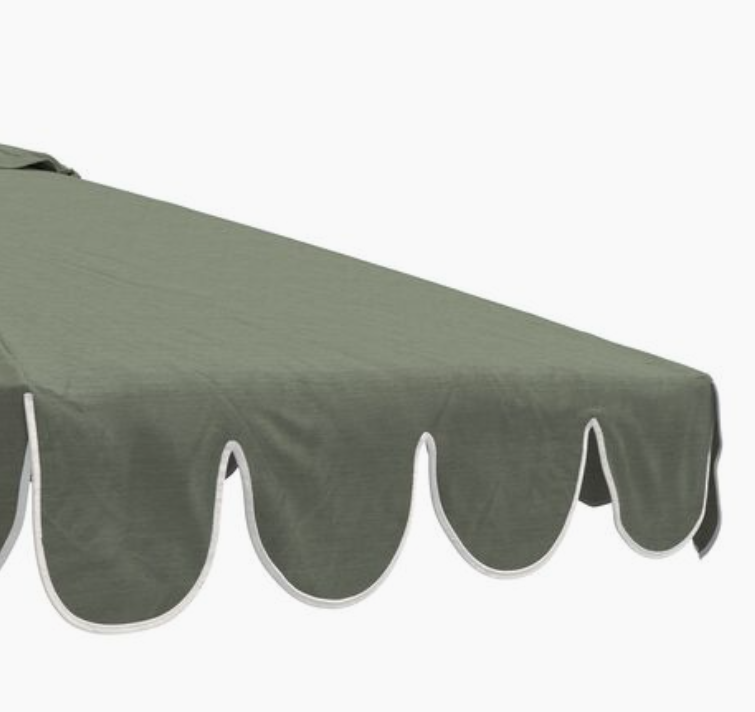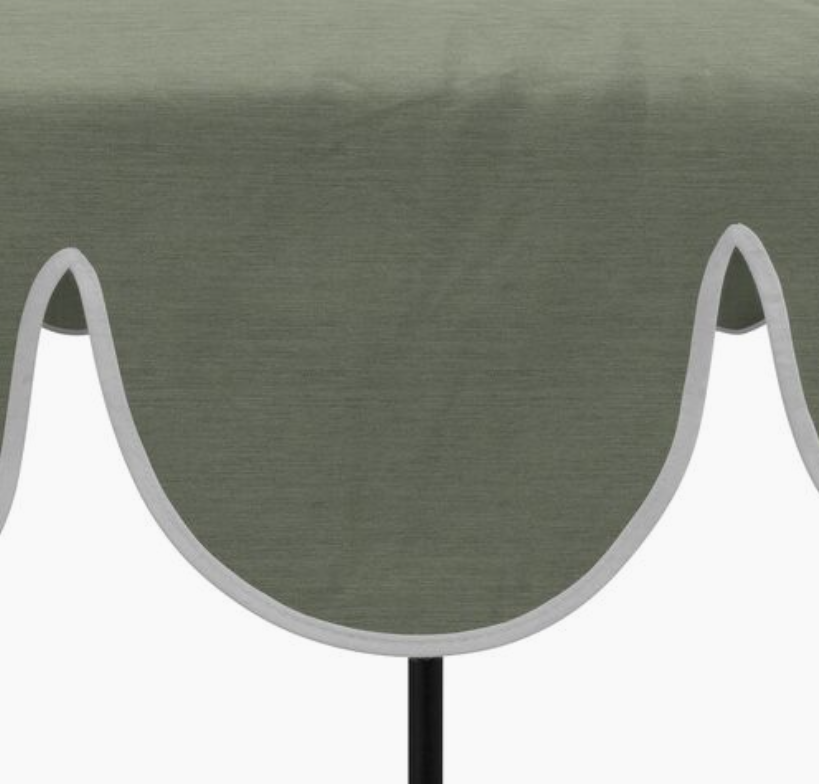 Outdoor  market umbrella black aluminum frame green fabric with white trim scalloped Patio Umbrella