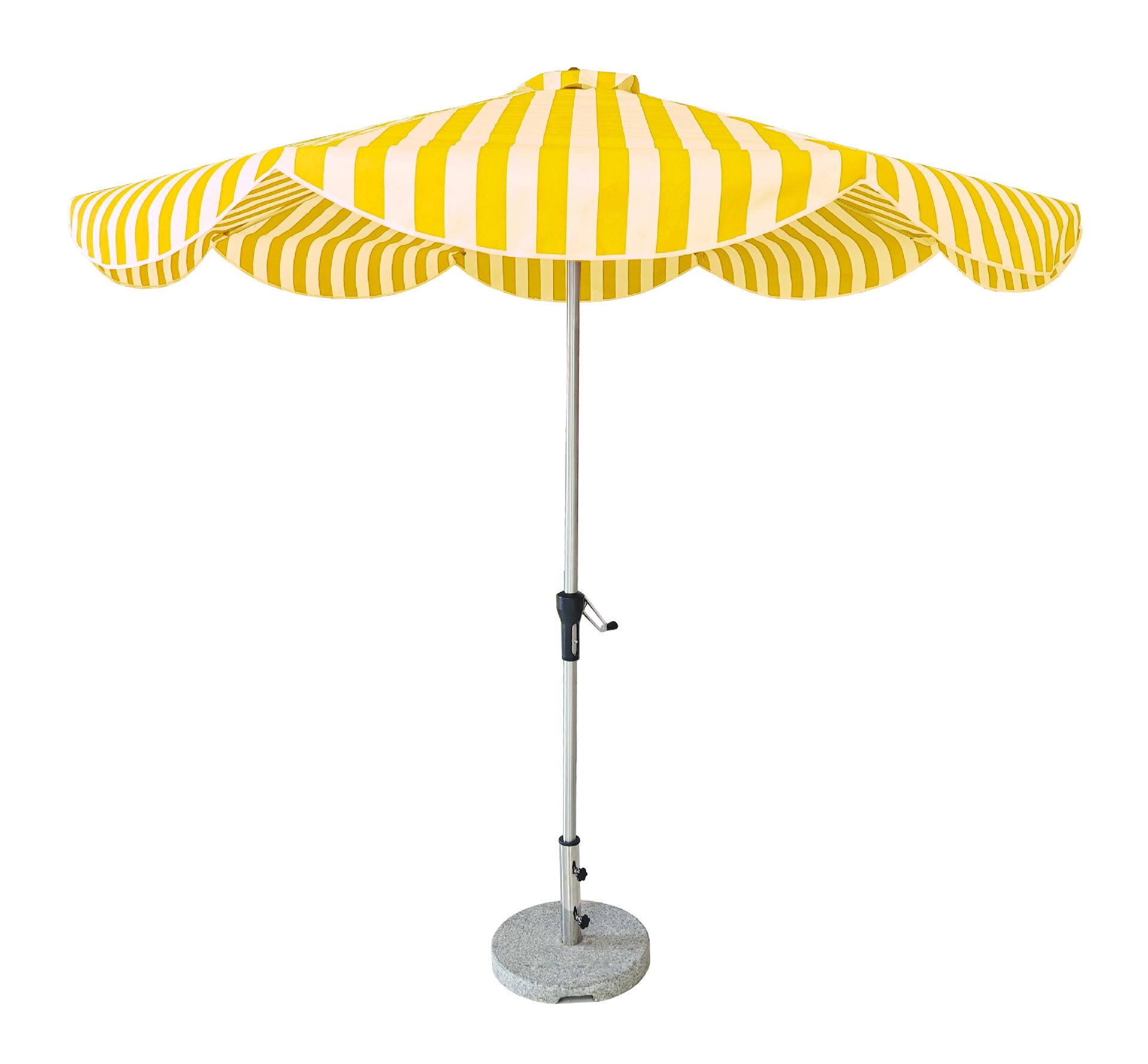 Outdoor Market Umbrellas aluminum frame white and yellow striped fabric central column with curved edge wedding Umbrella