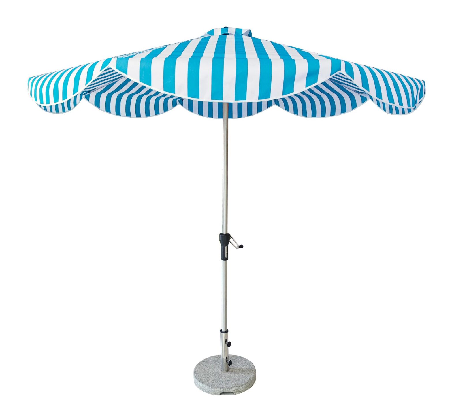 Event Market Umbrellas aluminum frame white and emerald green striped fabric with curved edge wedding Umbrella