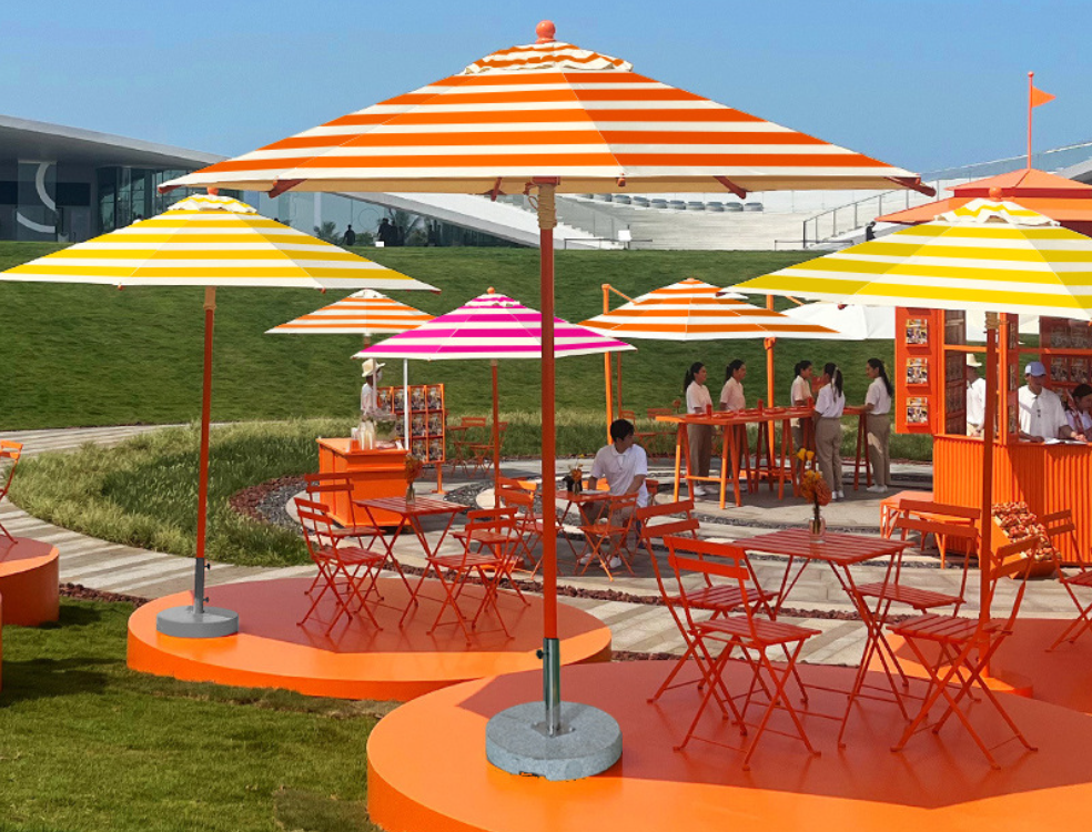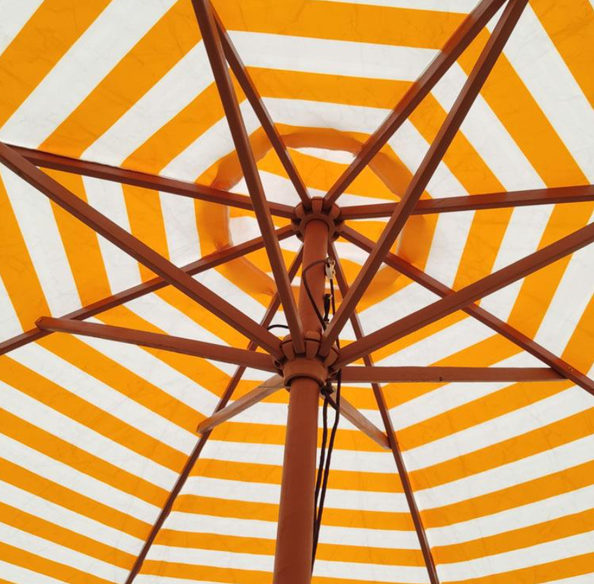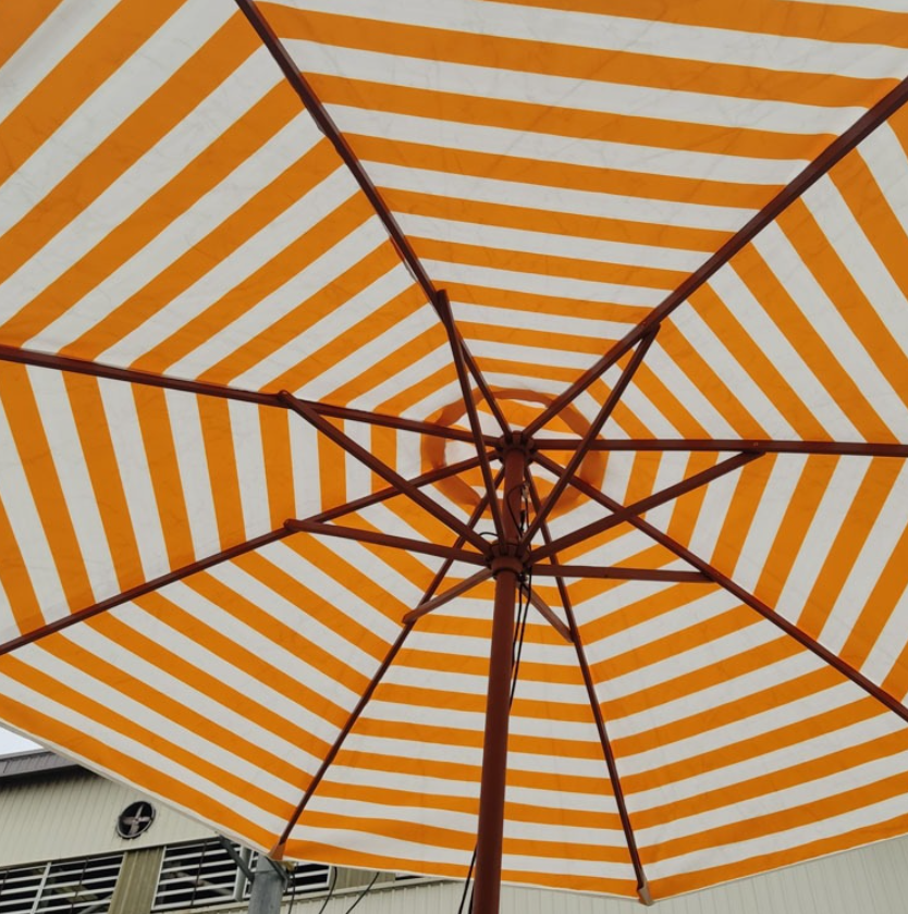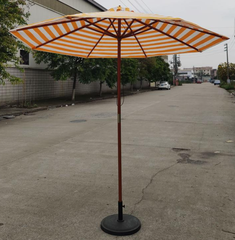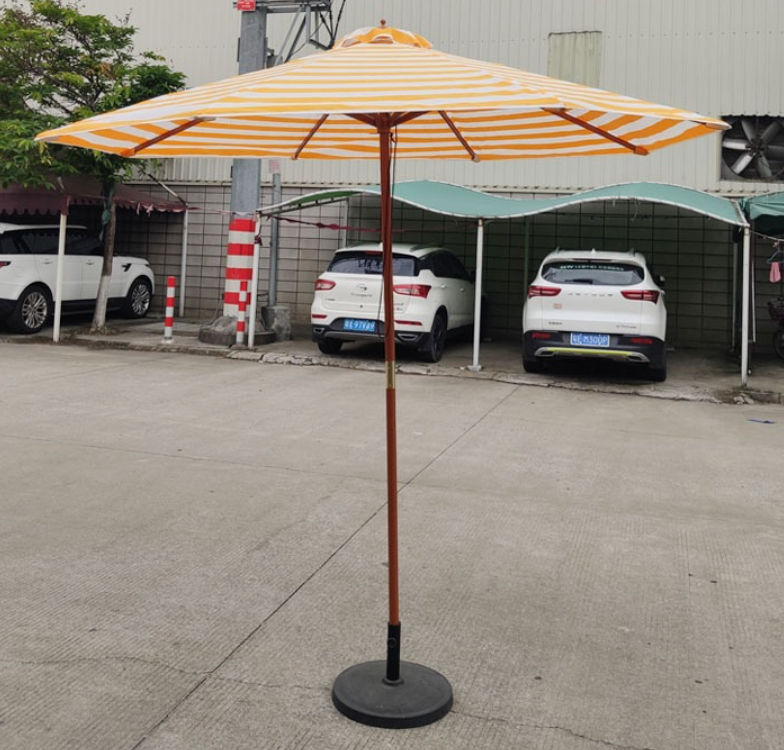 Outdoor Market Umbrellas solid wooden frame frame white and yellow striped fabric central column wedding Umbrella