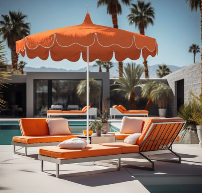 Outdoor patio market umbrella white aluminum frame orange fabric with white trim garden umbrella