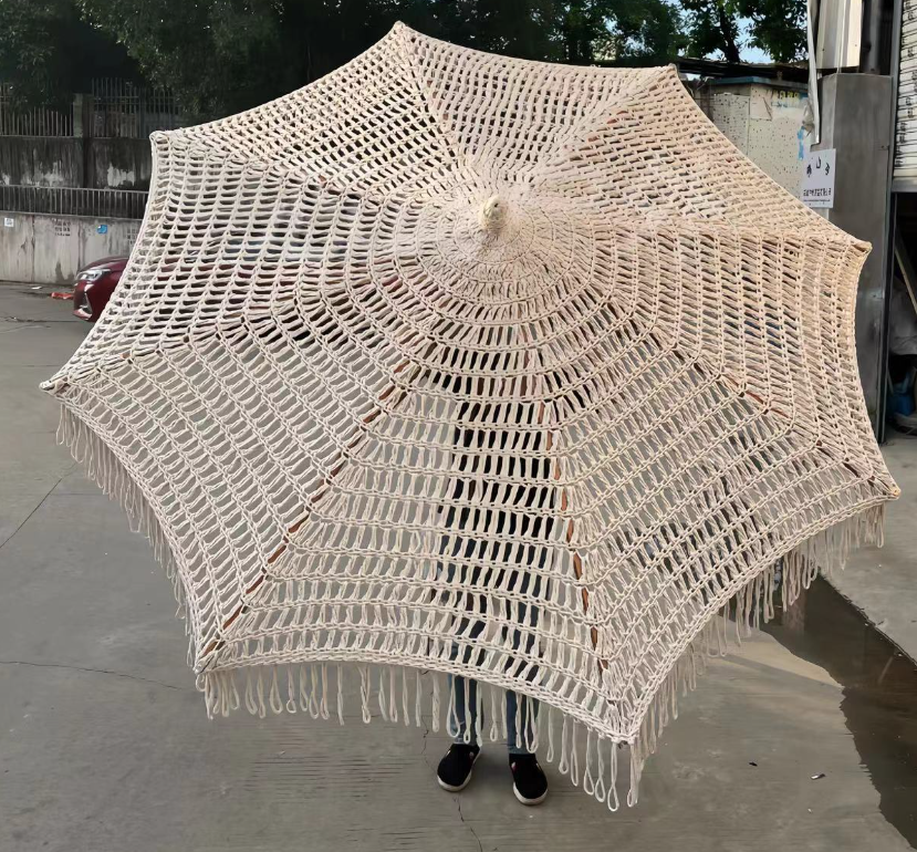 Outdoor Patio Umbrellas steel frame round wedding Umbrella with fringe edge
