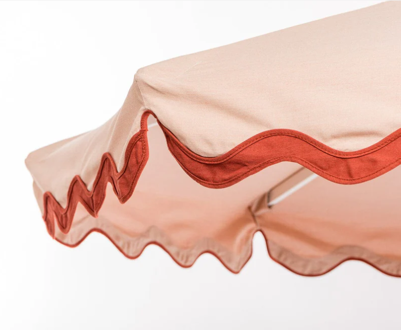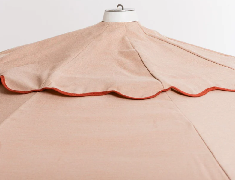 Beach Scalloped market umbrella aluminum frame green with moss green trim umbrella for outdoor