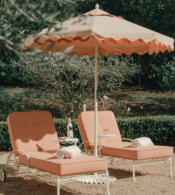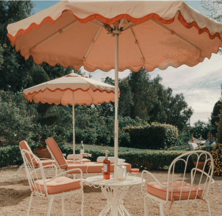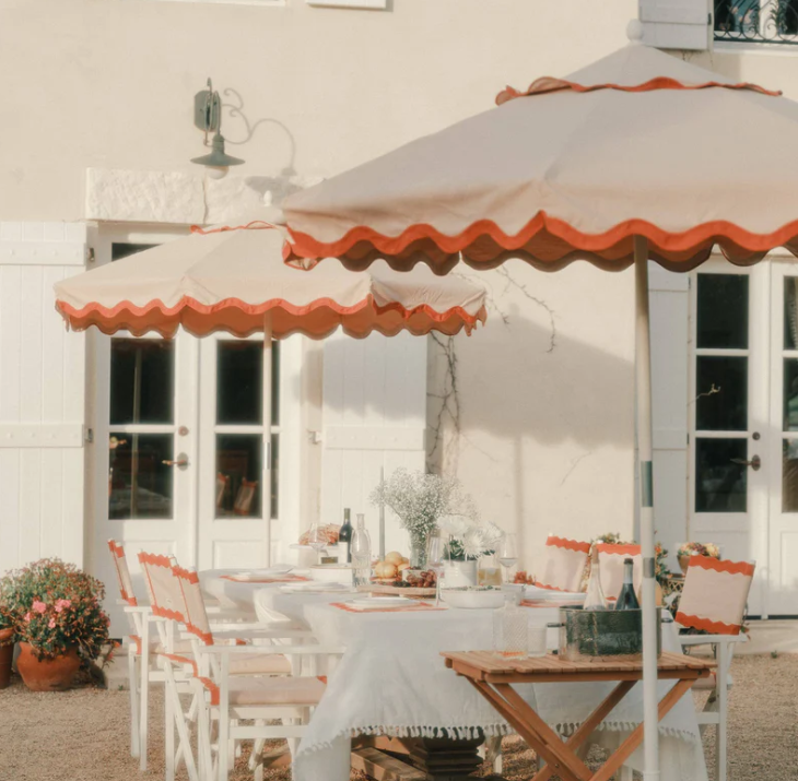 Outdoor Scalloped market umbrella aluminum frame yellow with white trim umbrella outdoor patio sunbrella