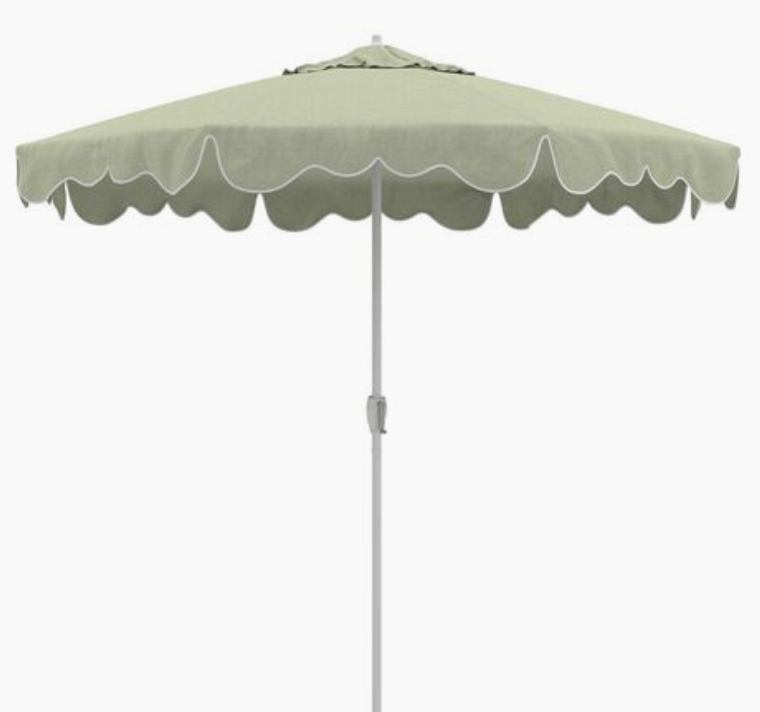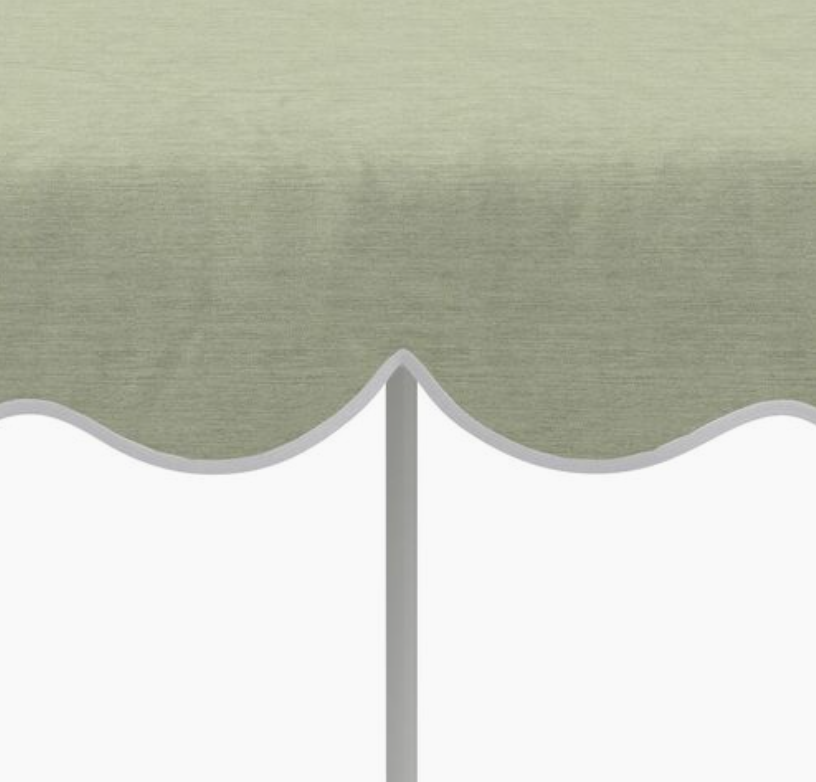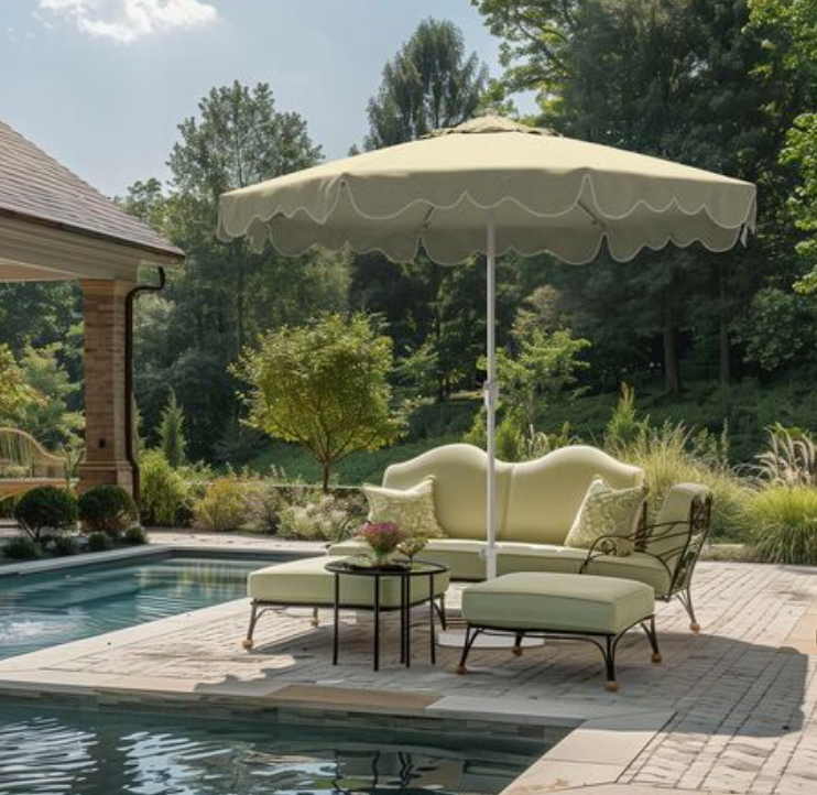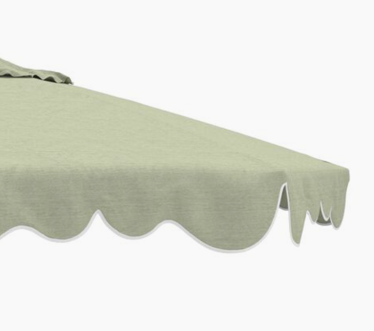 Outdoor market umbrella black aluminum frame green fabric with white trim scalloped Patio Umbrella