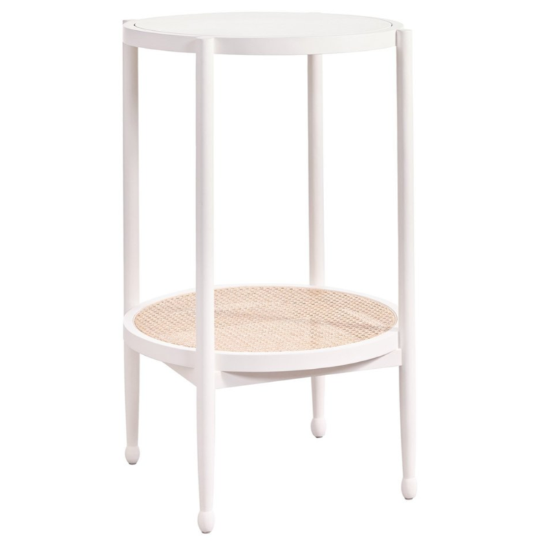 Party furniture black wooden frame rattan mesh round bar table high timber cocktail table