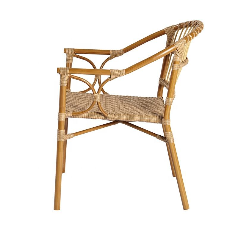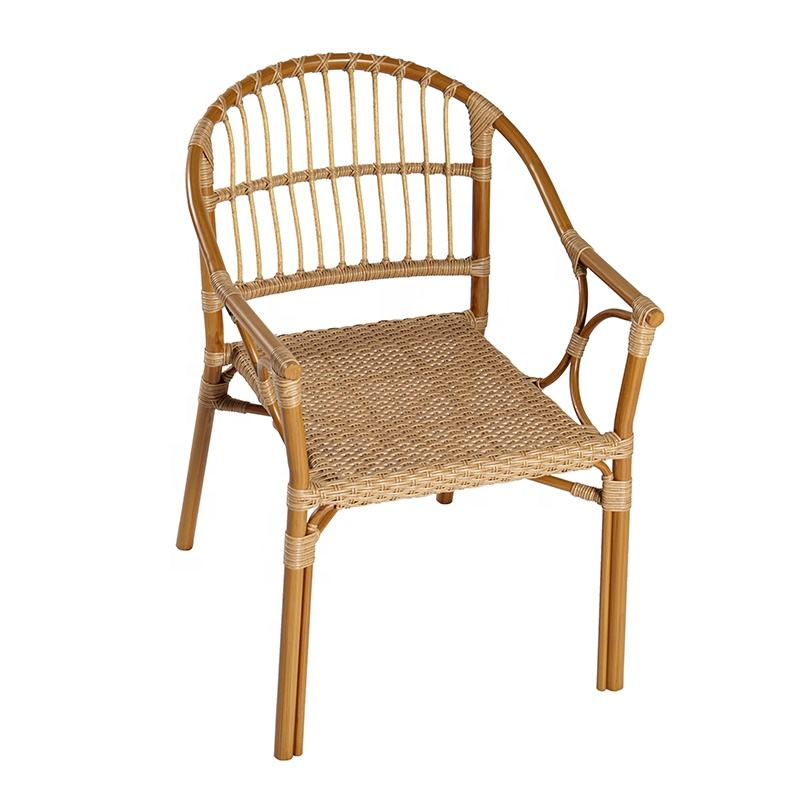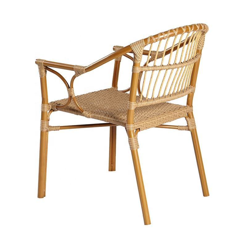Patio Restaurant Wicker Armchairs Furniture Outdoor Bistro Rattan Aluminum Dining Chairs