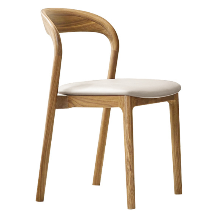 Cafe furniture supplier natural wooden frame light grey leather upholstered seat dining chair timber solid wood cafe chair
