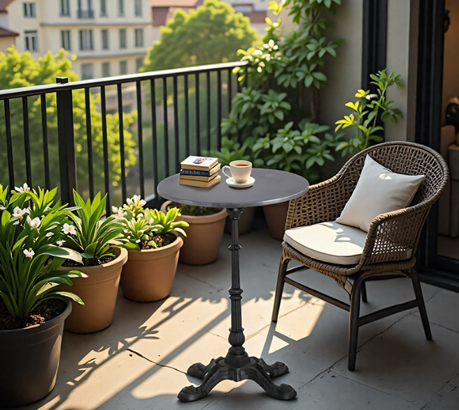 Retro industrial style metal cafe table black steel top cast iron round restaurant table