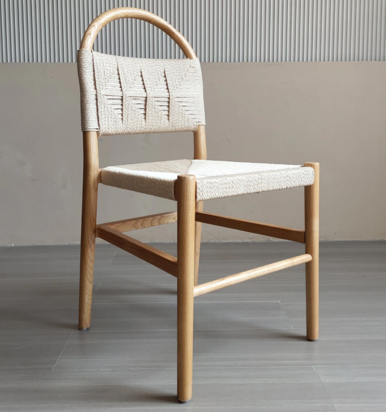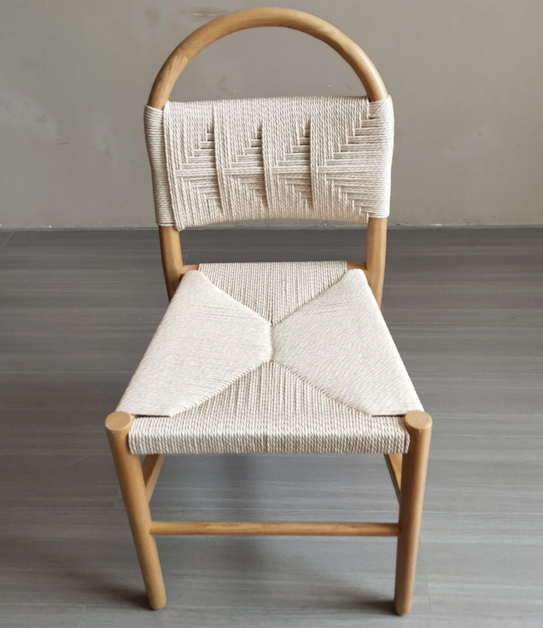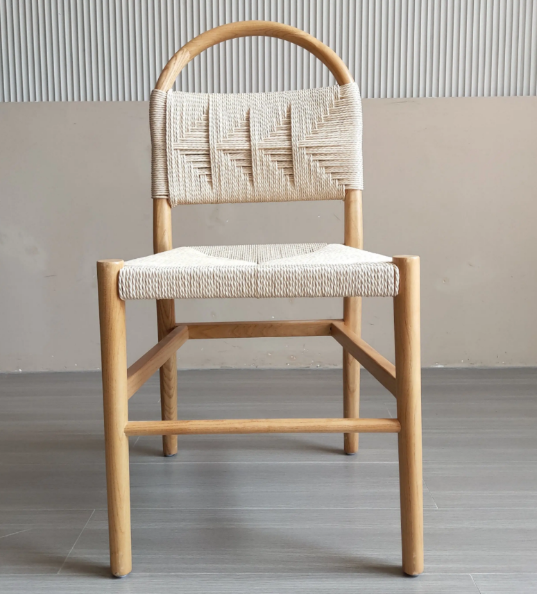Half Moon Modern Wooden Dining Chairs Wedding Event Party Chairs Wooden Braided Rope Chairs