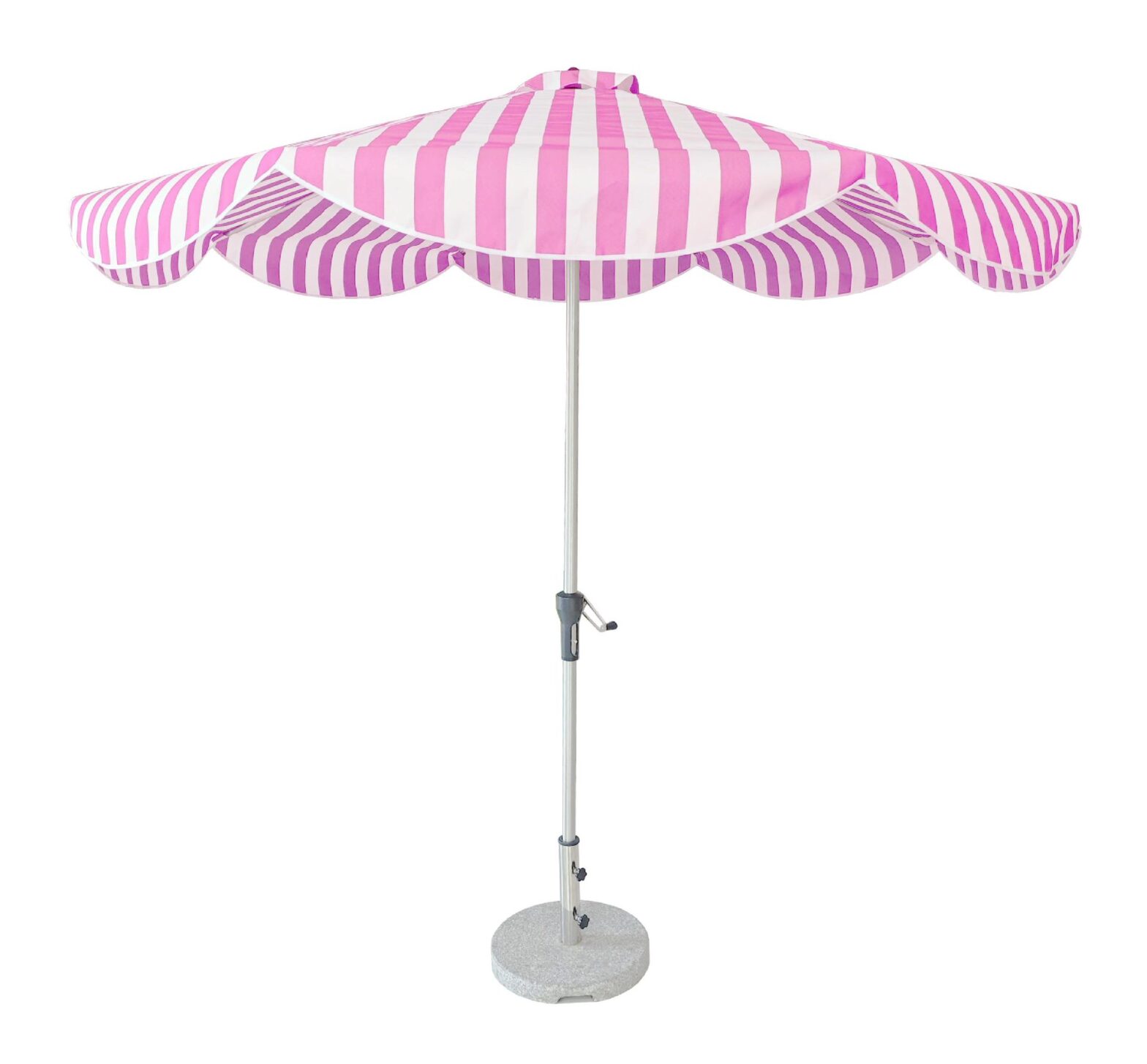 Event Market Umbrellas aluminum frame white and emerald green striped fabric with curved edge wedding Umbrella