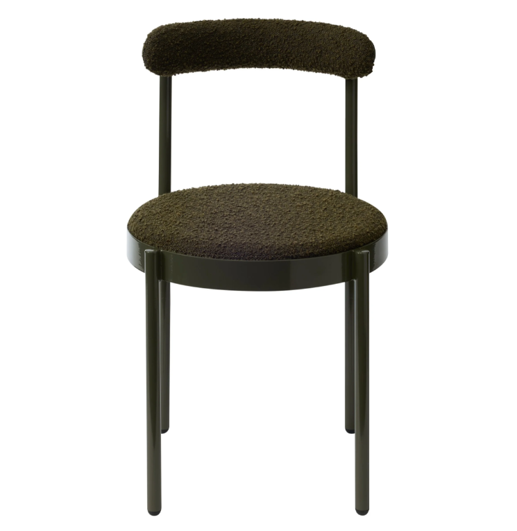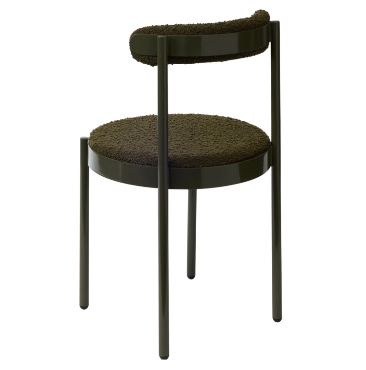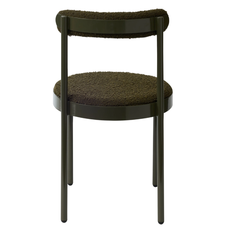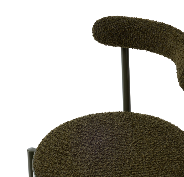 Foshan factory event hire furniture stackable black powder coated metal frame boucle fabric upholstered dining chair for wedding